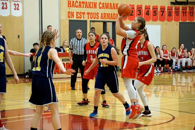 Armada lost a heartbreak game to Highland from Comox on Friday night with a final score of 54-50 and lost to Nanaimo District Secondary School on Saturday 64-53. The Armada player of the game on Friday was Memphis Dick and Raegan Dudoward on Saturday.
