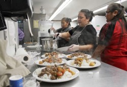 Within Ahousaht’s T-Bird Hall half a dozen people sweat over duck, venison, halibut, clams and salmon that cover metal counters in the community building’s kitchen – the harvest from the First Nation’s surrounding territory. Outside the kitchen rows of tables span the room, a few men sit awaiting the crowd that will soon gather. The building intermittently falls into darkness as the power cuts out, leaving the kitchen crew with a lone work light hanging from the door. Some chuckle at the familiar trait of life in the remote community.