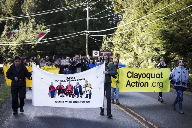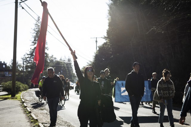 With participation from members of the Tla-o-qui-aht First Nation, on Feb. 10 Friends of Clayoquot Sound held the march for the Wet’suwet’en’s opposition to the natural gas pipeline being built through their land. The show of solidarity began with a crowd gathering at the Best Western Tin Wis hotel, and the march reached the Village Green in Tofino by midday.