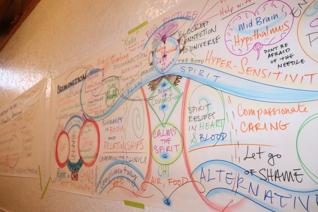 Over the two days participants worked in breakout groups, discussing the issues and proposing solutions. They said there was a need for more funding for treatment centres. In addition, there is no detox facility in Port Alberni; people talked about unconventional ways to address this need. One idea is to provide detox services at a First Nations facility on reserve.