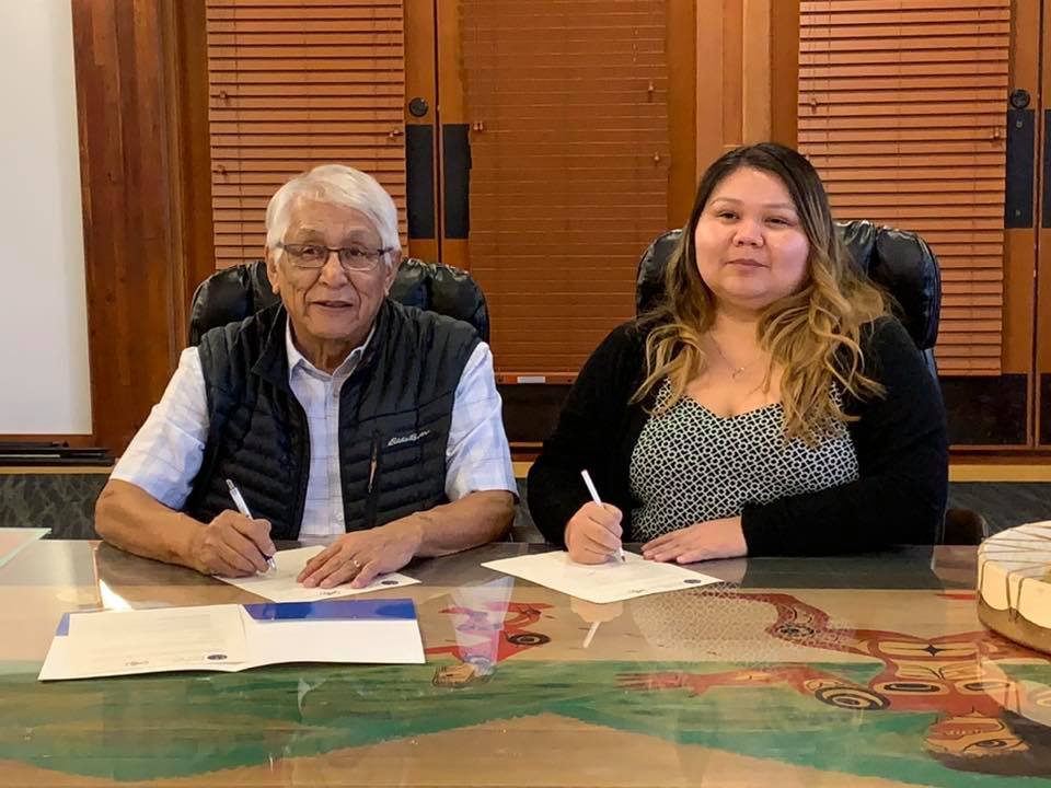 The protocol agreement is rooted in the sacred principles of ʔiisaak (Utmost Respect), ʔuuʔałuk (Taking Care of….), and Hišuk ma c̕awak (Everything is One). It was signed in front of elected and hereditary leadership from both First Nations. Respected elders were also among those who witnessed the event.