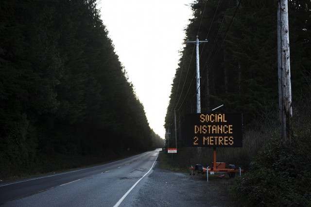 The notice from Vancouver Island’s west coast communities noted that bars, pubs and spas are closed – and the few restaurants that are operating are serving take-out food for local residents, essential workers and health care staff.