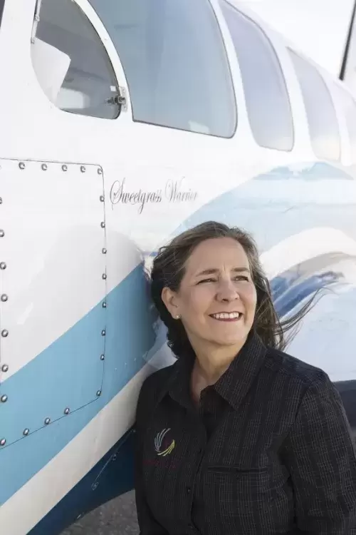 Fraser will be making her deliveries with her plane, a twin engine PA31 Piper Navajo Chieftain, which is called the Sweetgrass Warrior.