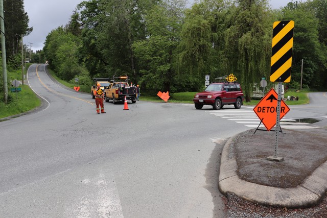 BC Hydro estimates the road will fully open at 12:30 p.m. after they install a new pole.
