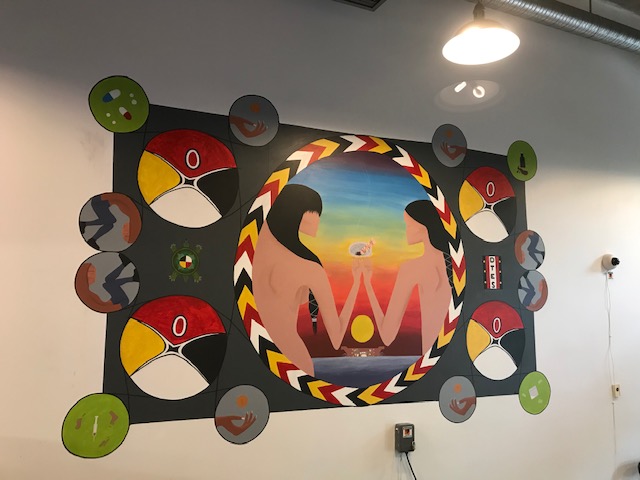 According to Geisbrecht, her piece signifies the struggle for a lot of people in the Downtown Eastside. She’s seen it herself, and heard what it’s like from her grandmother. The addictions, homelessness, and poverty, as well as the loss of cultural and family connections, are something she has a lot of compassion for, and wanted to illustrate as best she could in her painting. Of course, staff at the AFDS gave her tips along the way, about what they’d like to see, too, she said.