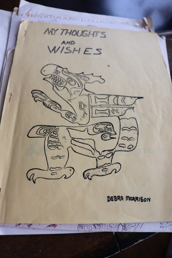 The booklet of poetry is signed by Deborah Morrison of Kitamaat Village. The poems, compiled in June, 1972, speak to the loneliness she felt and her views on racism. Others are reflections of what she was dealing with in the moment, like her final days in Port Alberni or her feelings about her family and her culture.
