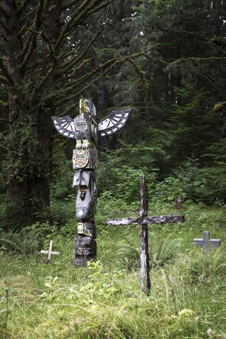 Prior to the arrival of the Catholic Church, Kyuquot had a burial site on Dead Man’s Island, where bodies were placed inside a cave. When the church moved in, the ritual became taboo, as it wasn’t a traditional Christian ceremony. Shortly after, the nation’s burial grounds were moved to Mission Island.