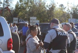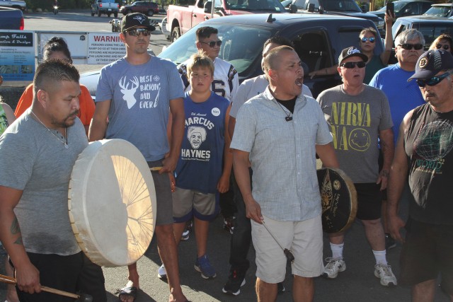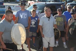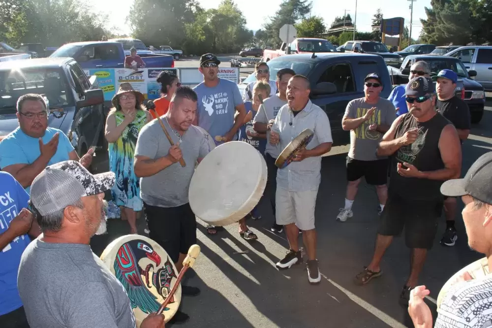 By 5 p.m. on Sept. 2 a pickup truck sat in the way of the ramp into the Somass from the Clutesi Haven Marina, as a large gathering of Tseshaht members gathered in support.