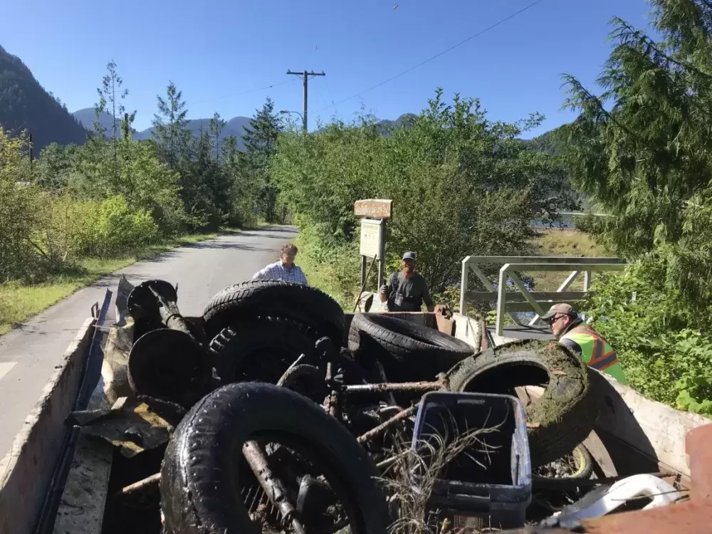 Zeballos River braids where it meets the sea, so four waterways were involved in the effort on the municipal side of the estuary, Bailey said. They hauled tires, axles, containers, even a transmission from the river mud.