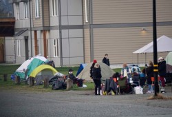 Several tents remain erected on a grassy area beside the shelter on Eighth Avenue and supporters continue to visit the site to bring food, clothing and support to those now staying there.