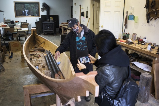 Gisele has been helping her father with his videos. The recordings extend beyond the technicalities of how to carve a traditional dugout canoe. Collaboratively, they try to weave in stories about how generations of salmon returning to a river system provide nourishment to the surrounding forests, making it possible for a canoe to come into existence.