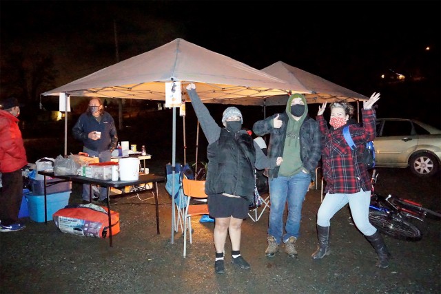 Lisa George and a group of advocates were given approval from the City of Port Alberni to set up tents on a gravel lot on a trial basis. Three 10 X 10 tents will be erected from 6 p.m. to midnight this Friday, Saturday and an unannounced day next week to provide those in need a place to warm up by a propane fire and grab some food.