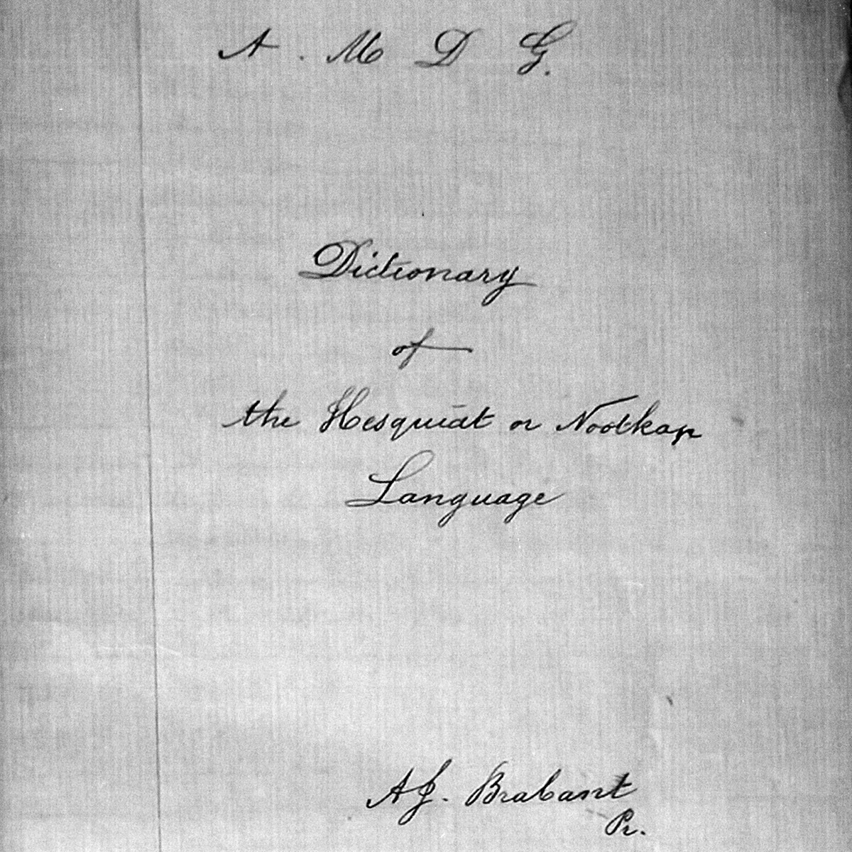As part of the Hesquiaht Language Program, a handwritten dictionary by Reverend Auguste Joseph Brabrant in 1911 was transcribed into the nuučaan̓uł phonetic alphabet by the late-Larry Paul, Angela Galligos and Layla Rorick.