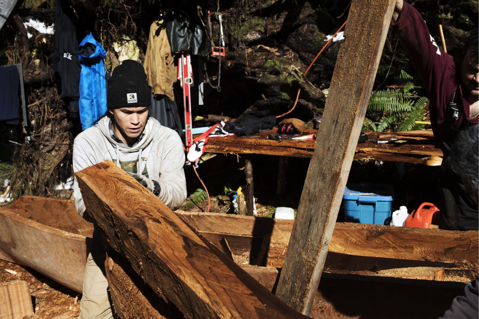 Sabbas normally operates a water taxi in-and-out of his home in Hot Springs Cove. When he got the call from Jules to help with the project, he dropped everything for the opportunity to learn a tradition his own grandfather used to practice.