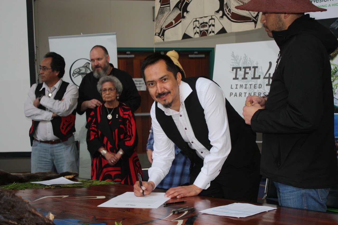 Union local management and HFN leaders signed a memorandum of understanding (MOU) Feb. 18, committing to work together to ensure “undercut volume” within Tree Farm Licence 44 (TFL 44) is allocated to the First Nation while developing training and jobs in the forest industry.