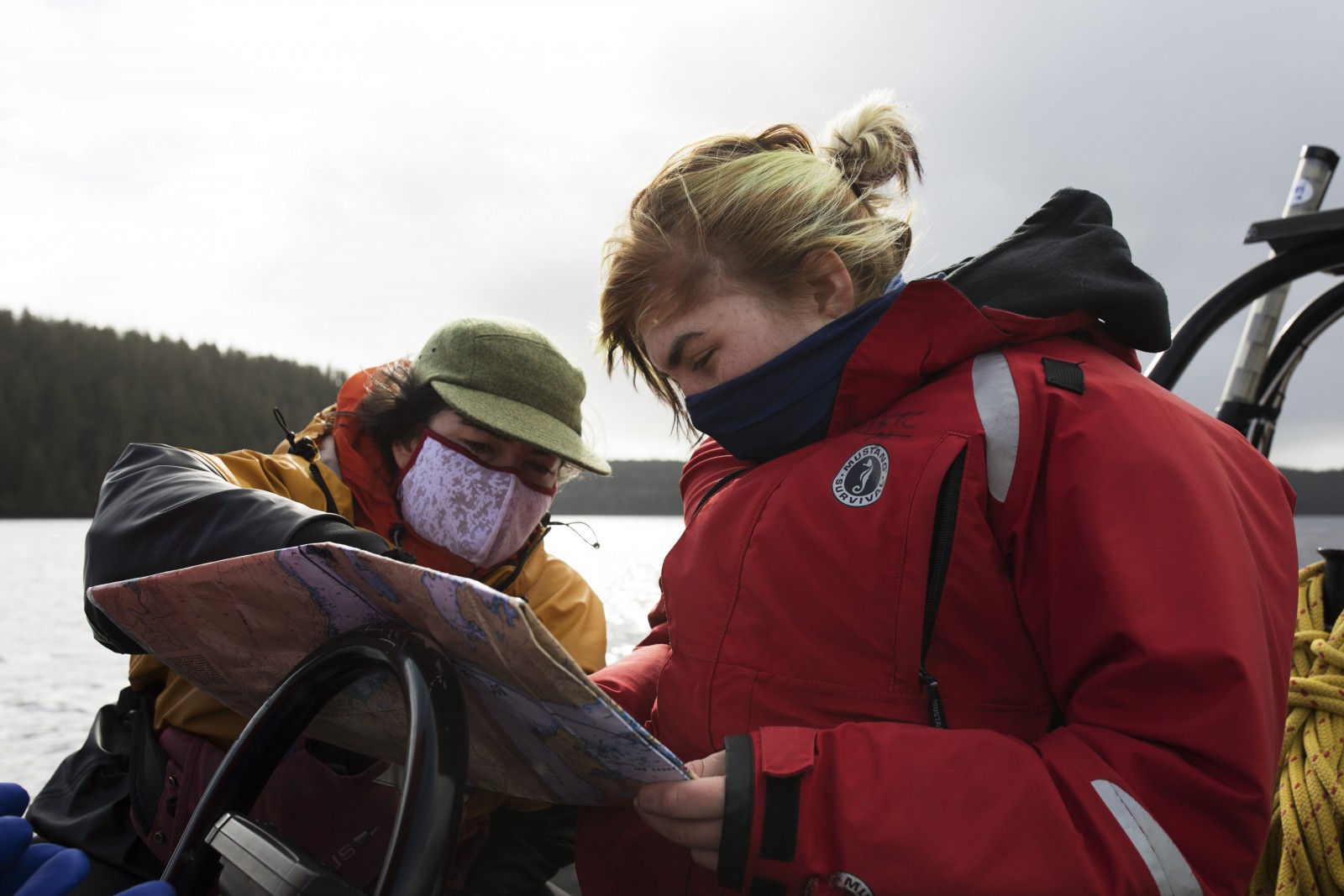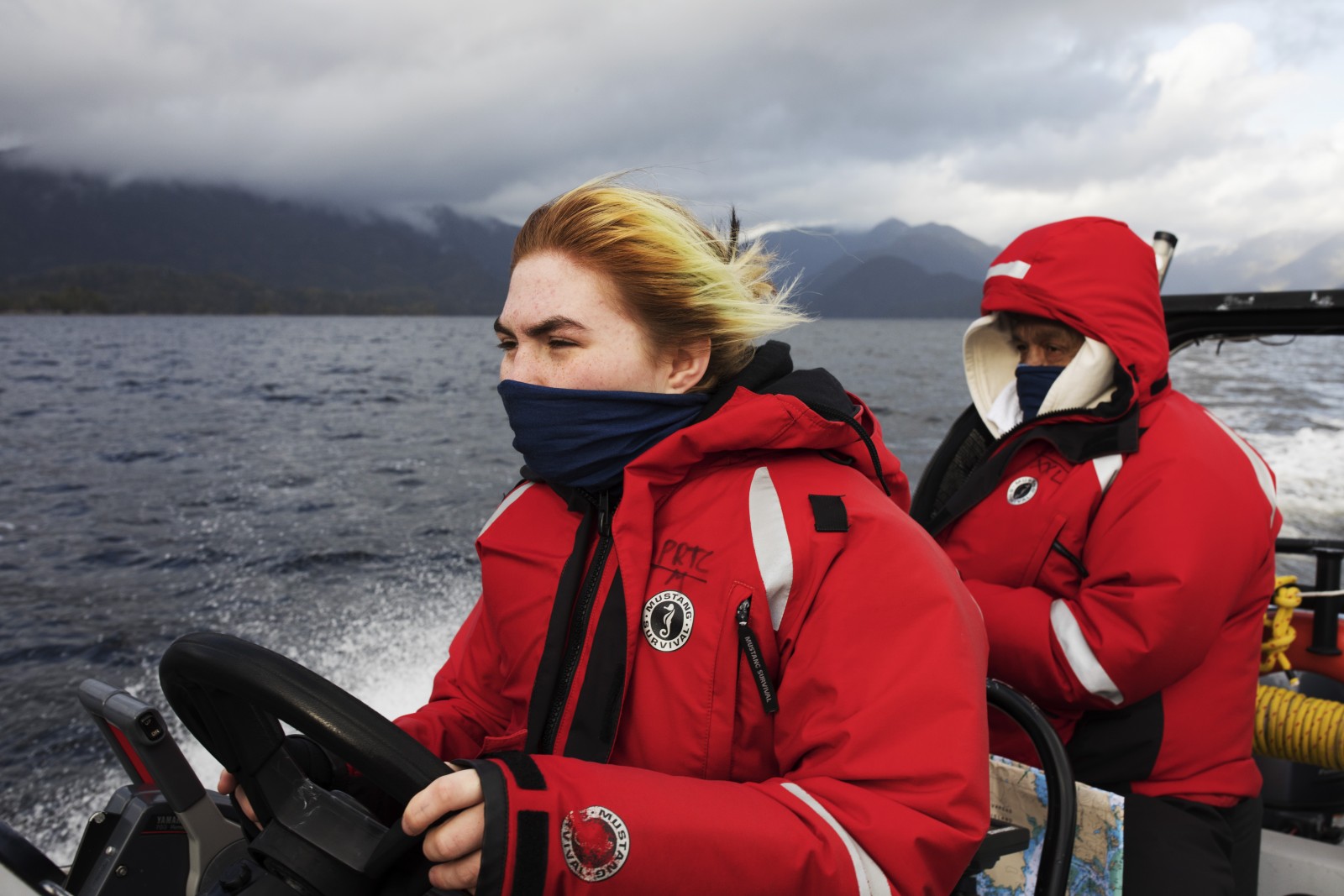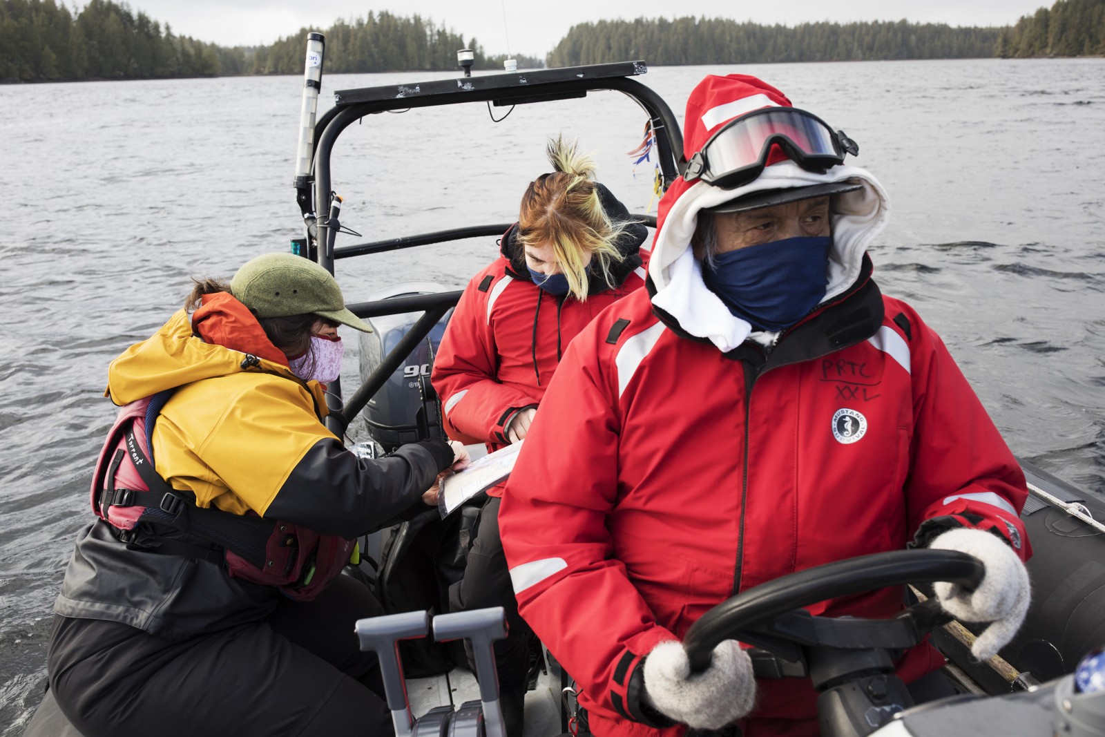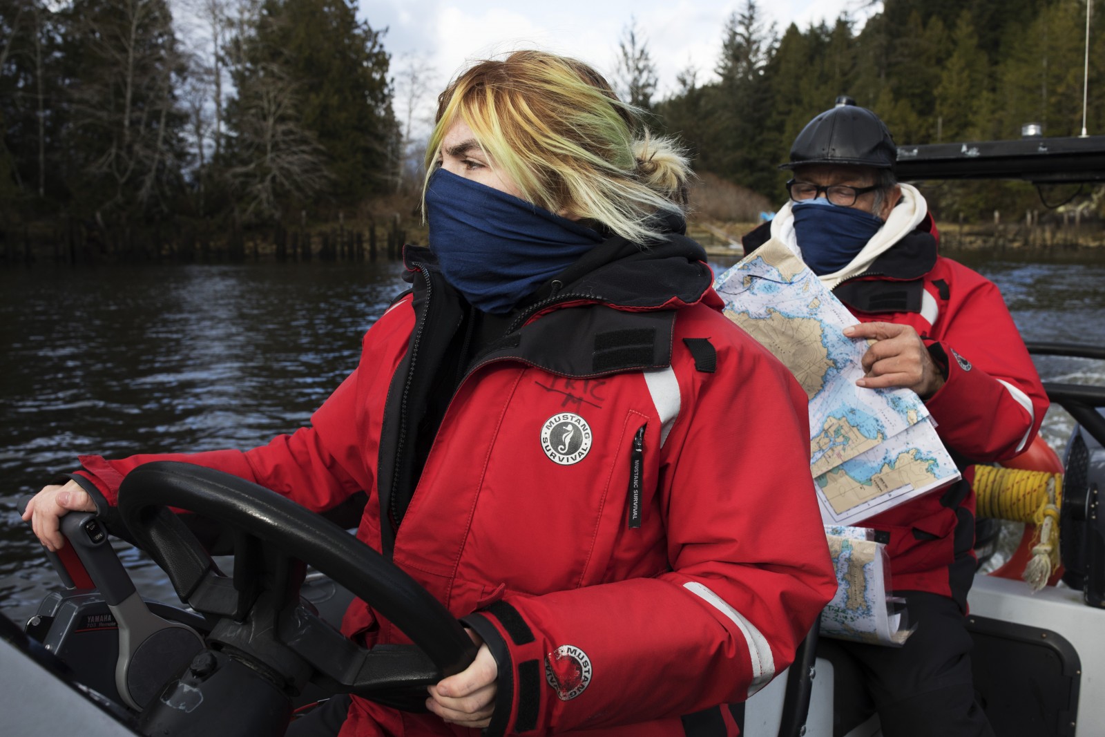 Relying on his fellow classmate, Brianna Lambert, for navigational directions, Titian continued driving out into rough seas up the Tofino Inlet.