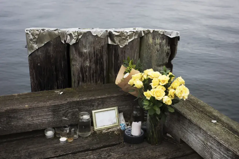 With Meares Island standing watch in the background, the family laid down yellow roses and candles on the dock.