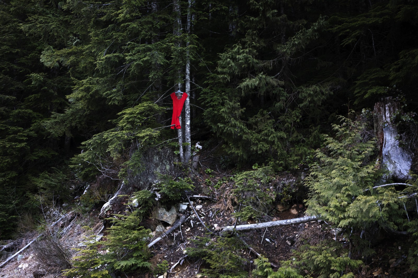 The disappearance was noticed today by Jennifer Touchie, as she and her partner checked on the location of the dresses 15 to 20 kilometres east of the Highway 4 junction to Tofino and Ucluelet. The discovery was disturbing, as the pieces were hung about 50 feet apart to recognize two women who are among the countless Indigenous females who have gone missing or were murdered. The dresses were hung on April 25, said Touchie.