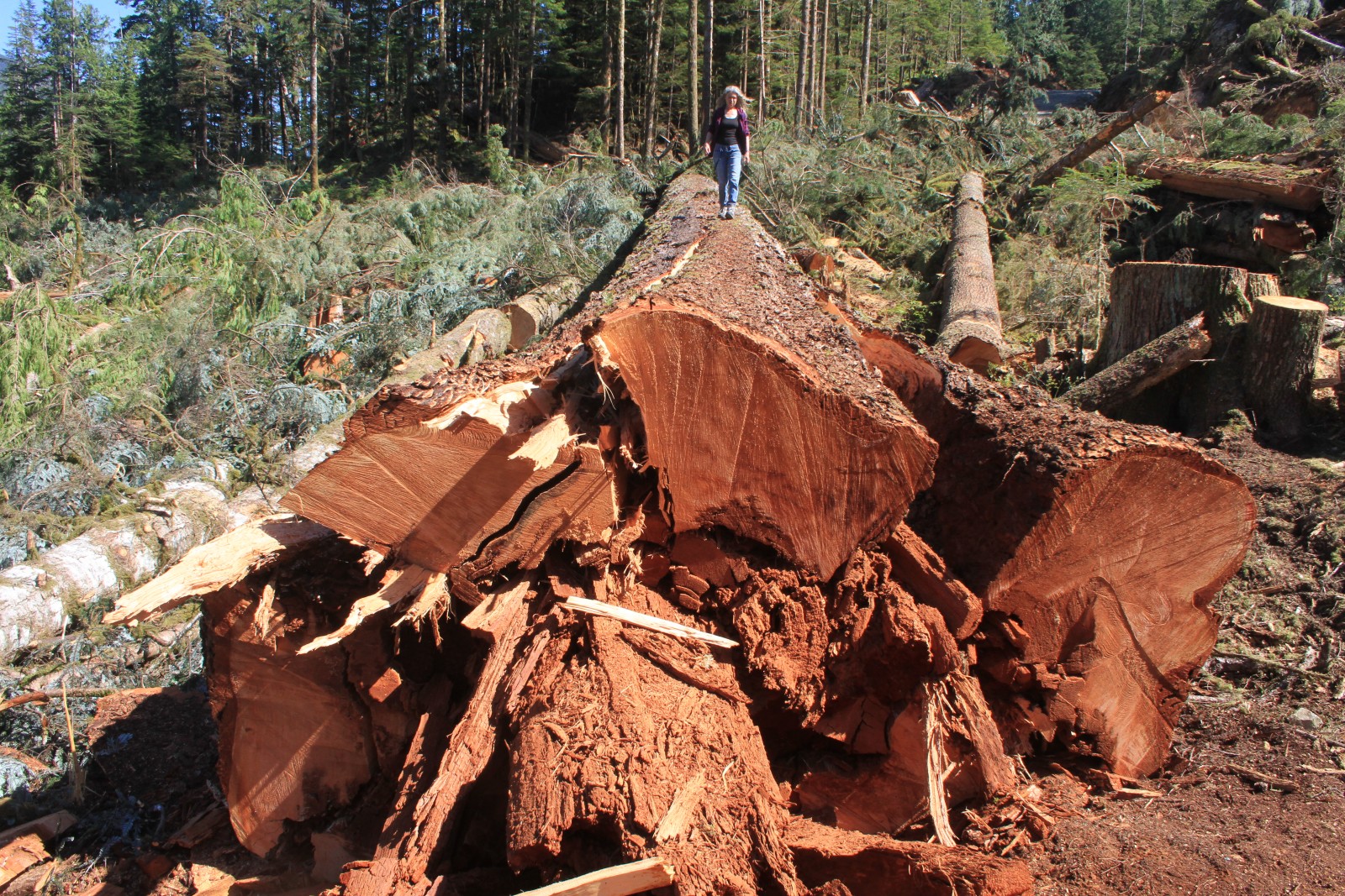The investigation began when the Ancient Forest Alliance discovered enormous trees that were recently cut in the valley, including a few with dimensions comparable to stands listed on the BC Big Tree Registry, a public archive of the province’s largest examples of different species. A disturbed bear den was also discovered inside one of the logged old growth trees, raising concern that forestry practices in the Nahmint were below provincial standards for the area.