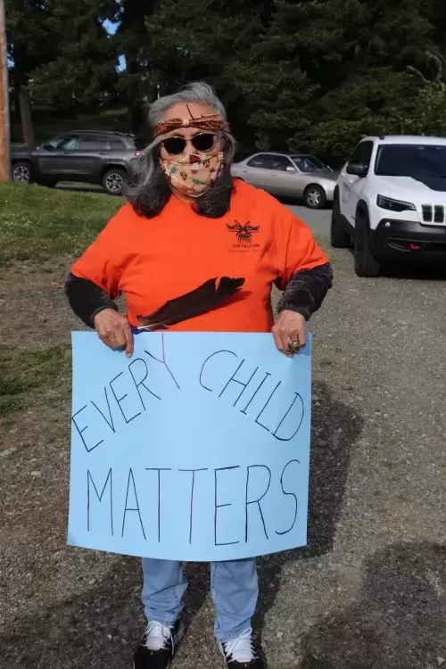 There was a vigil in honour of the 215 children buried in Kamloops at the Port Alberni Friendship Center. Organized by residential school survivors Wally and Donna Samuel, the vigil began at 6 p.m.