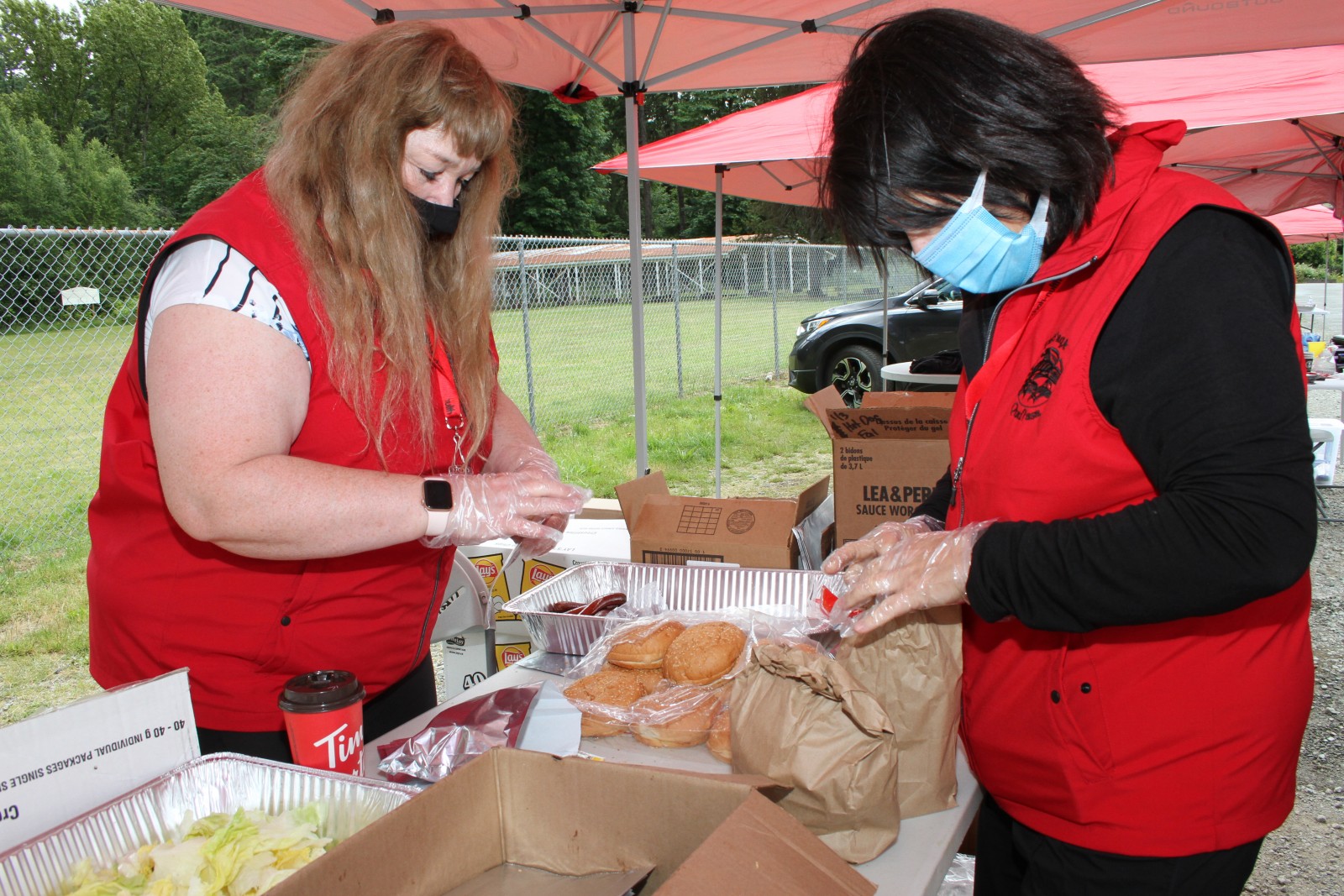 Restrictions brought by the COVID-19 pandemic prevented a picnic last year. While the provincial health officer’s measures have been eased this spring, limits on outdoor gathering led to team that provides the Quu’asa program to set up a pick-up location rather than its usual large-scale gathering. Paper bags were prepared by staff at tables in Dry Creek Park, where over lunches were picked up by passersby.