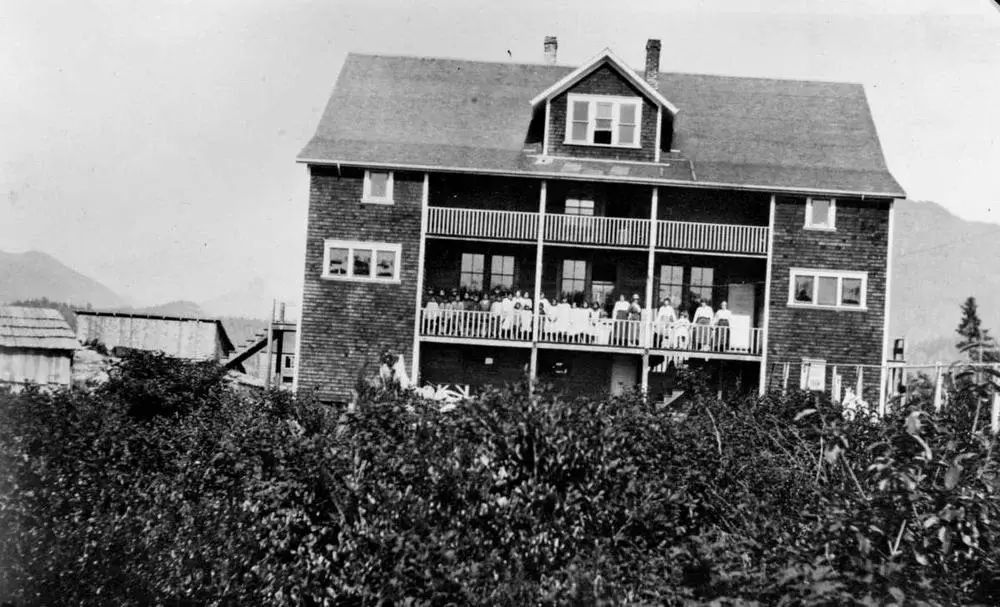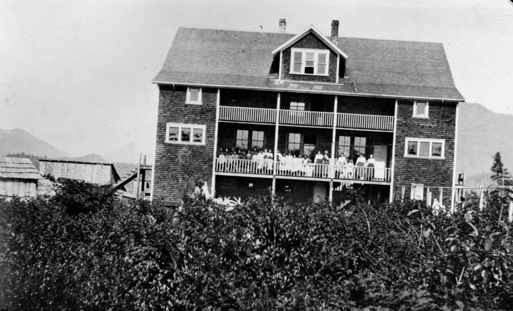 The original three-story residential school, built in 1904, housed 50 children. It burnt down in 1916. A day school operated for a few years until a new building could be constructed. Ahousaht boys built the second building as part of their education.