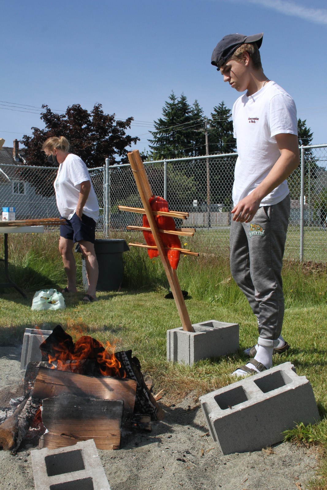 With a fire pit heating up to barbeque salmon behind them, students from the Eighth Avenue Learning Centre’s unveiled the name of the school’s new garden today.