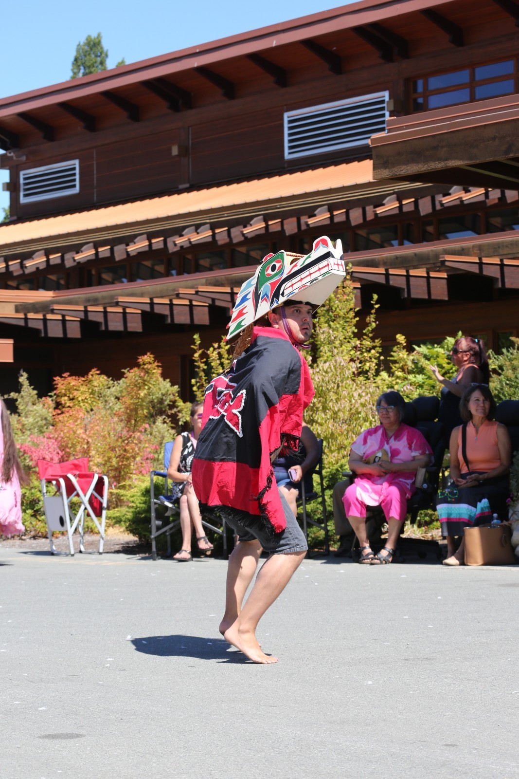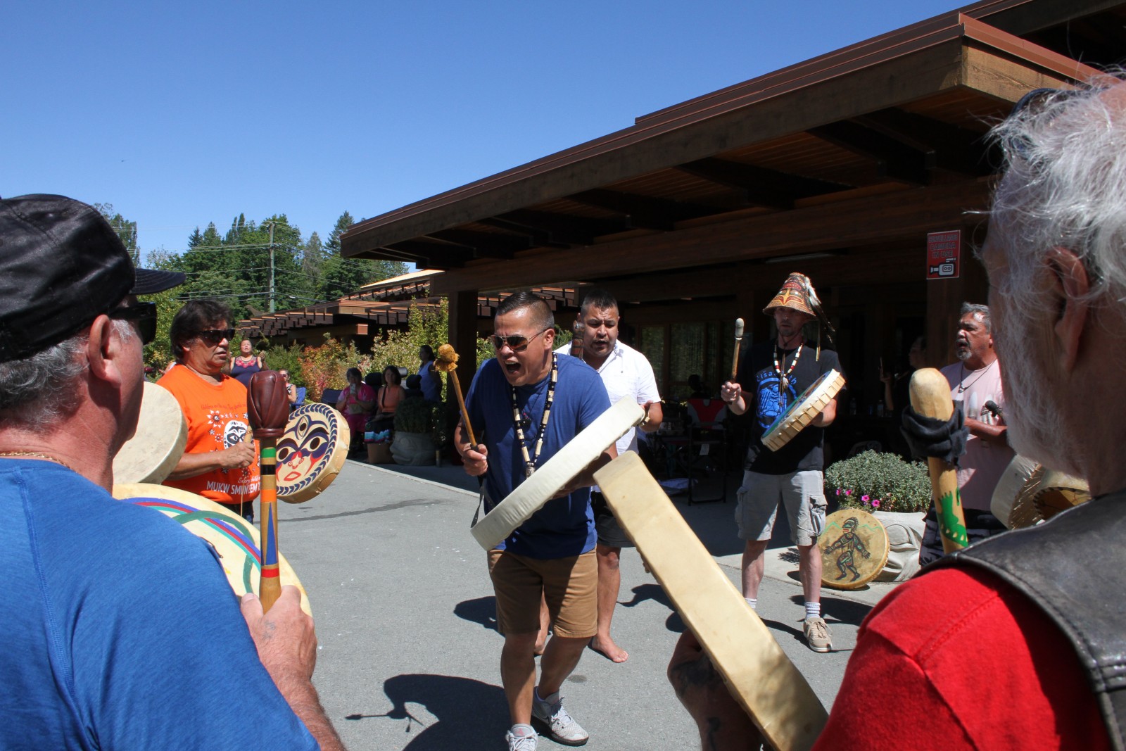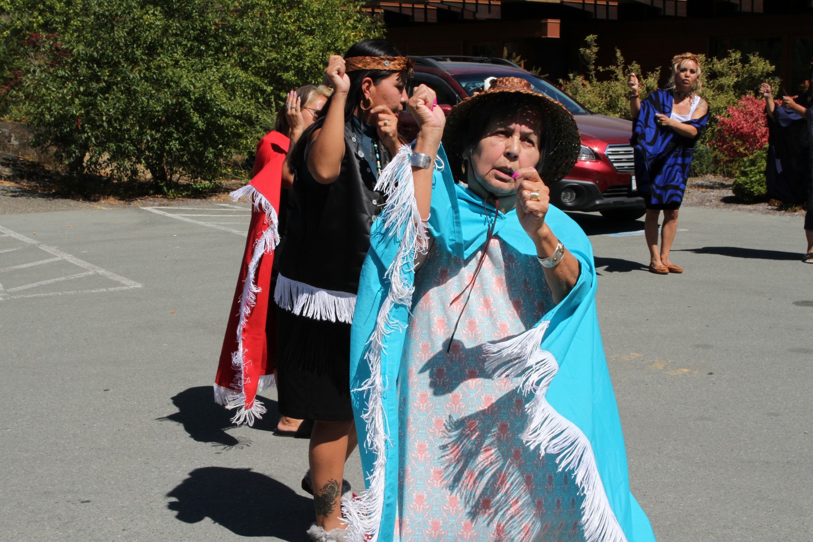 “I was invited by a number of the chiefs during the campaign,” she said, after being treated to a formal cultural welcome by the Tseshaht First Nation on July 24. She also met with the Huu-ay-aht and Hupacasath on Thursday July 22 in Port Alberni, followed by a visit to Ahousaht the following day. “I thought I would try and see as many communities on the Island as possible, so we reached out to Judith Sayers, and she was able to arrange three of the communities.”