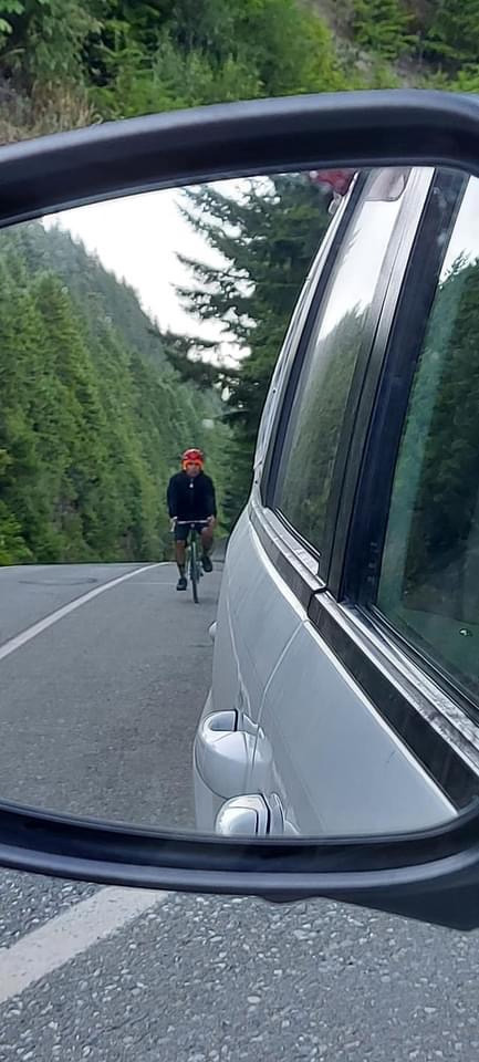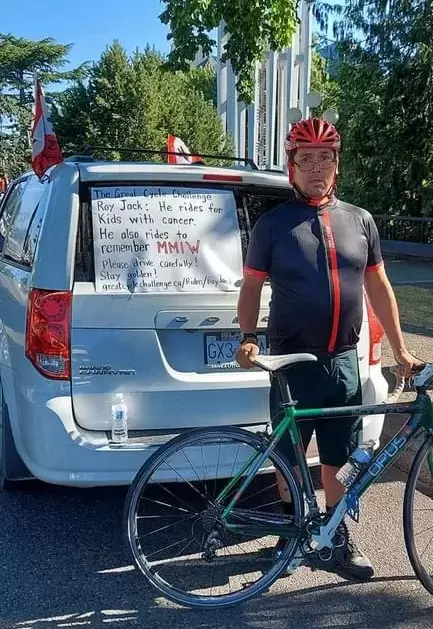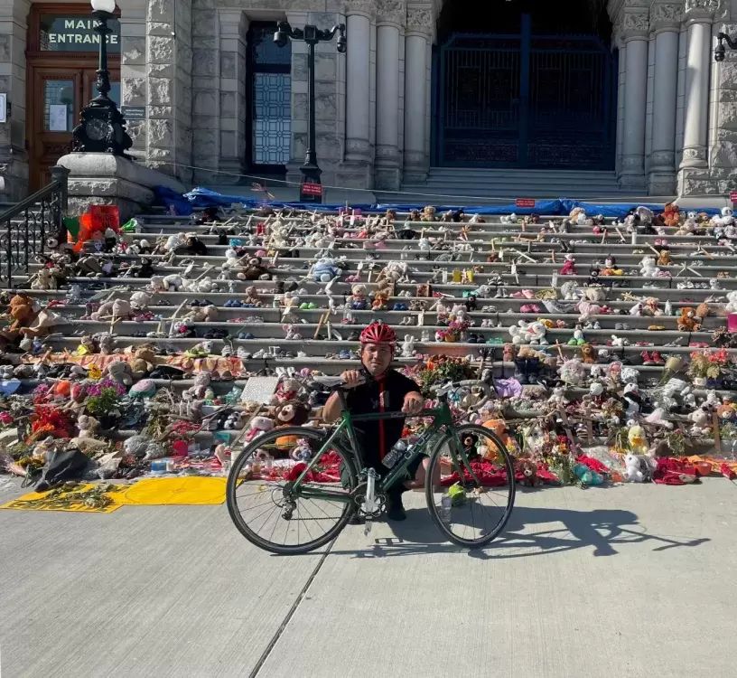 In late June, he cycled 215 kilometres, in honour of the remains of 215 children which were found on the grounds of a former residential school in Kamloops.