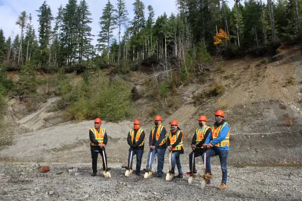 On Oct. 18 leaders from the region’s forestry companies, governments and First Nations gathered at the Blenheim Gravel Pit with golden shovels in hand, marking the start of the heavy lifting that will lead to a safer road to Bamfield and its surrounding communities. Hosted by the Huu-ay-aht First Nations, the gravel pit is the first of five planned to be used for building shoulder sections of the road that runs south of Port Alberni.