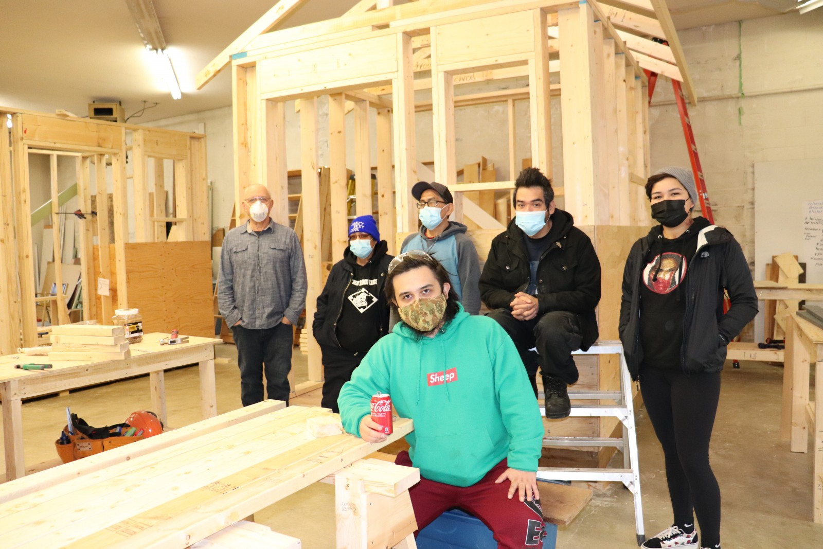 The students meet in a leased space next to the Overdose Prevention Site. A portion of the space is set up for classroom learning while the back of the room is being used for construction.