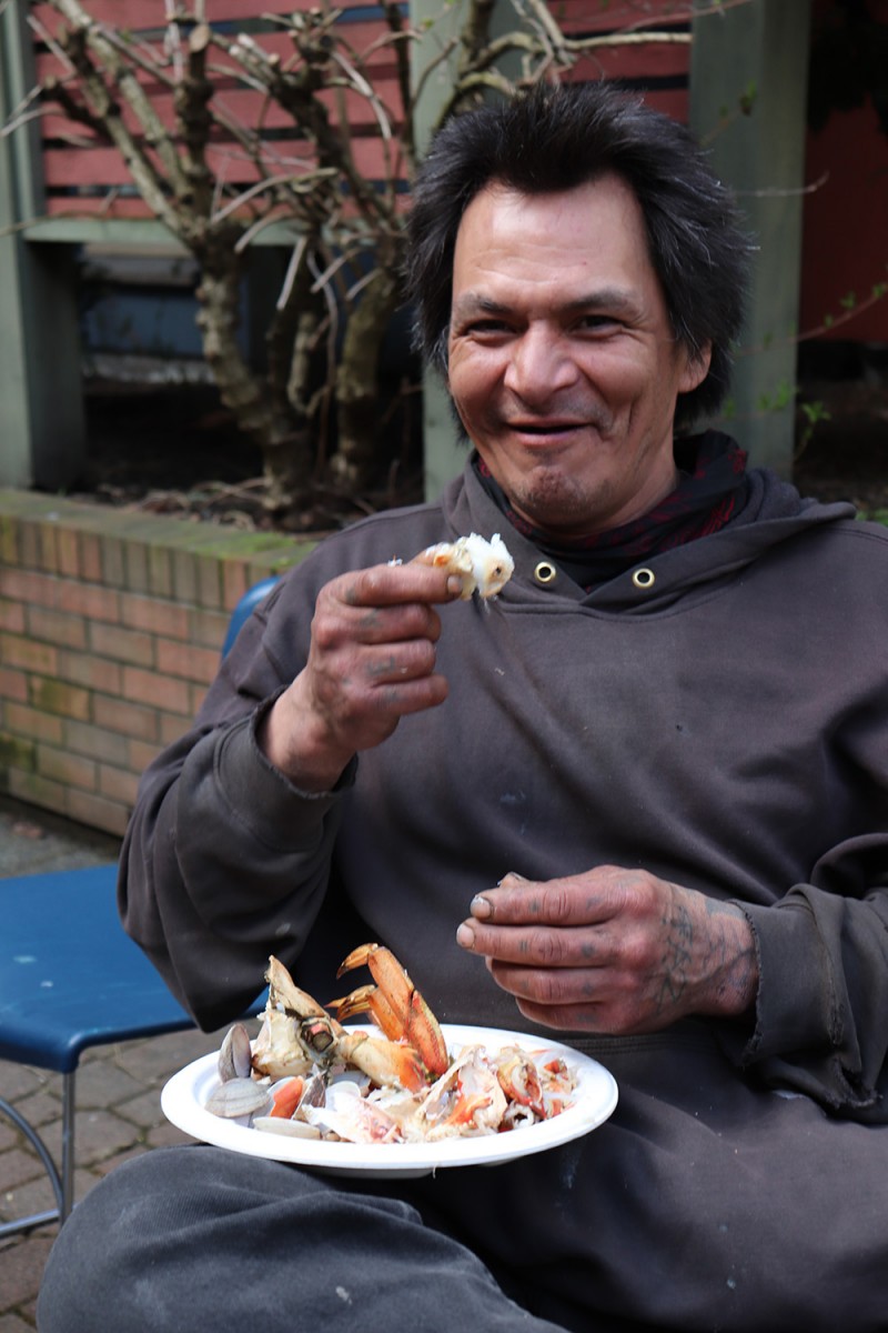 The meals are provided in downtown Victoria monthly, but this was the first seafood feast. Dick said the event not only allows people a rare chance to fill their bellies with food they love, but also provides an opportunity to connect with necessary services.