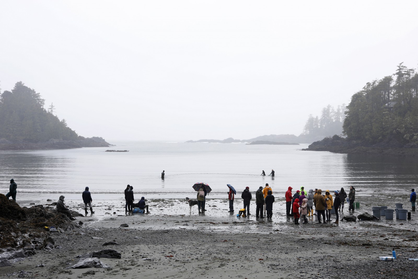 As part of this year’s whale festival programming, Jamie's Whaling Station partnered with the Huu-ay-aht First Nations to offer a tour to Bamfield, with whale watching along the way. In Bamfield, participants were given a guided tour of the traditional Huu-ay-aht village site of Kiix̣in by Wish Key.