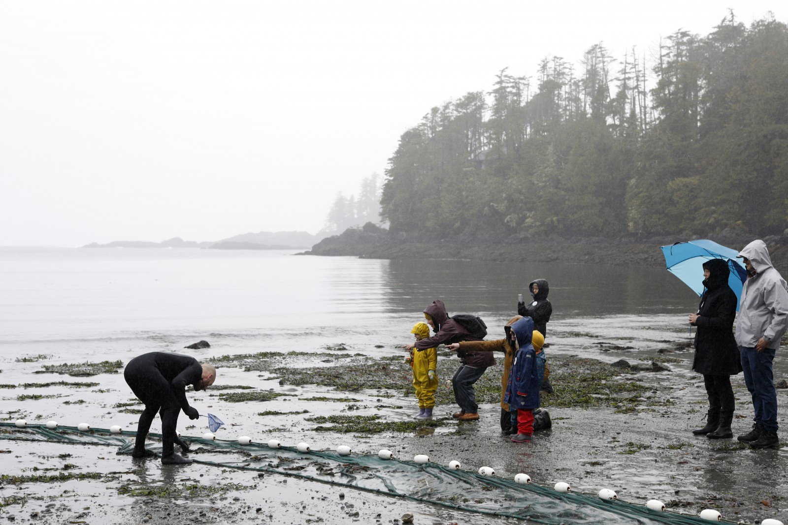 The Ucluelet Aquarium staff also participated in the festival by carefully dragging a seine net along the ocean floor in search of sea creatures for the aquarium on Terrace Beach. It’s the 10th year the aquarium has run the beach seine event, which allows visitors to interact with the surrounding organisms.