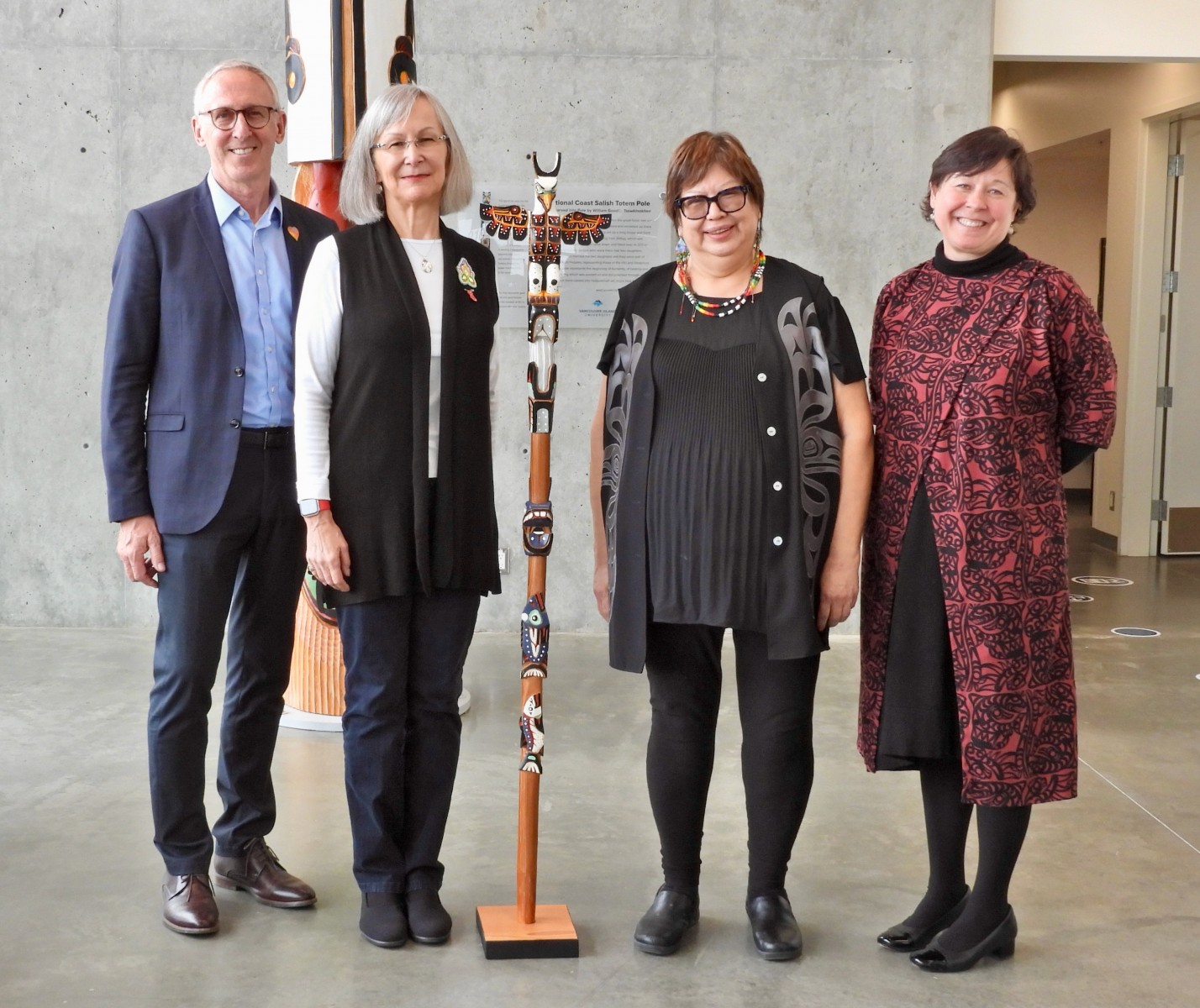 A halibut and salmon were also included in the carving to represent the wealth and culture Sayers brings to VIU.