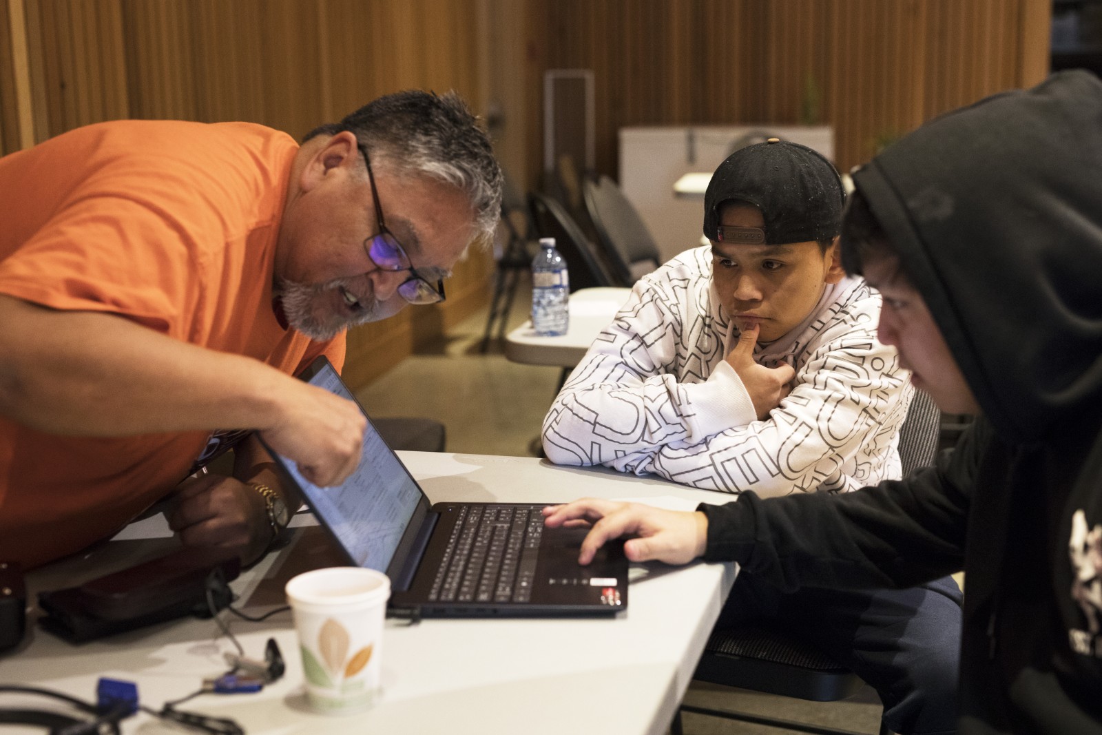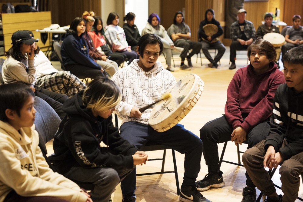 Throughout the day, which began with a talking circle and ended with drumming, singing and dancing, youth stopped by to sit with Lucas and retrace their family history through his genealogy database. Lucas said that after a young boy found out he had roots in Hesquiaht First Nation, he started “puffing” his chest out.