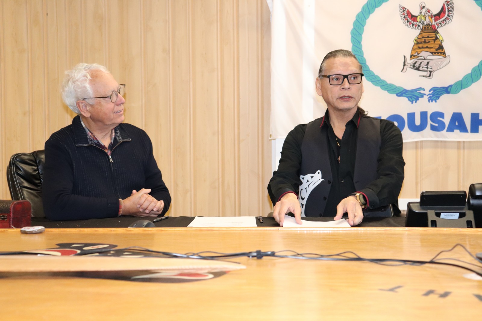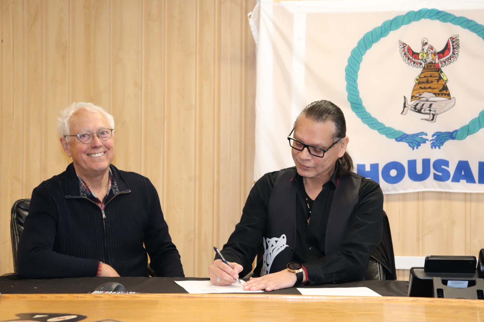 The provincial Minister of Indigenous Relations and Reconciliation, Murray Rankin, arrived in Ahousaht April 13 to sign an historic agreement with Ahousaht Ha’wiih and elected council. The agreement, called AHP-CII-UK, is an MOU (memorandum of understanding) that took about 18 months of negotiations between the provincial and Ahousaht governments to craft.