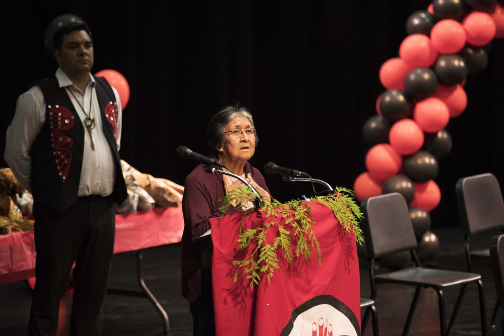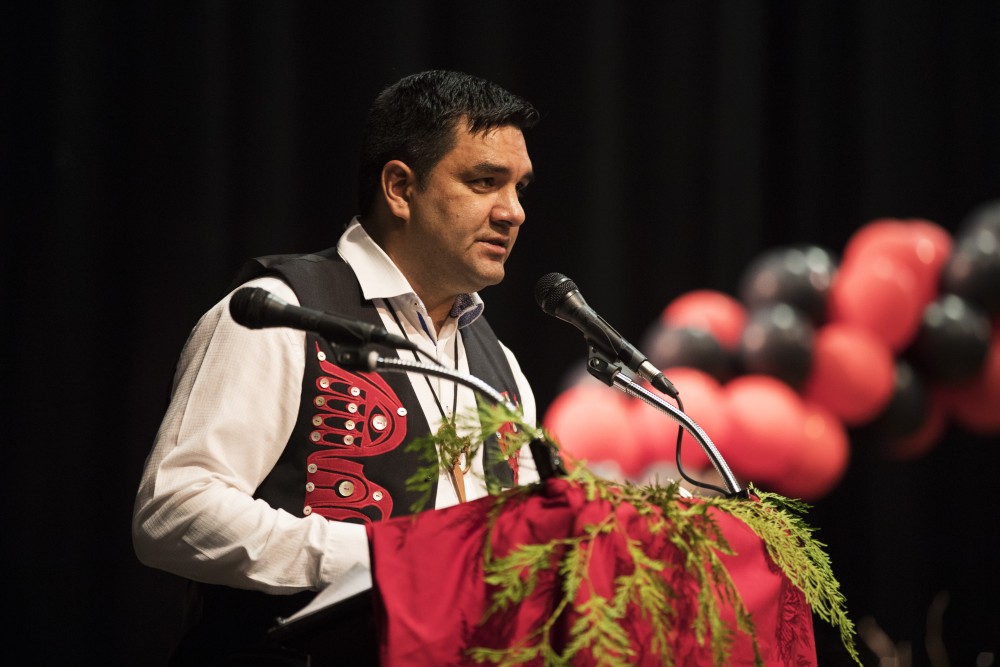 Alexander Ambrose beamed with pride as he was acknowledged onstage alongside his fellow students from Hesquiaht First Nation.
