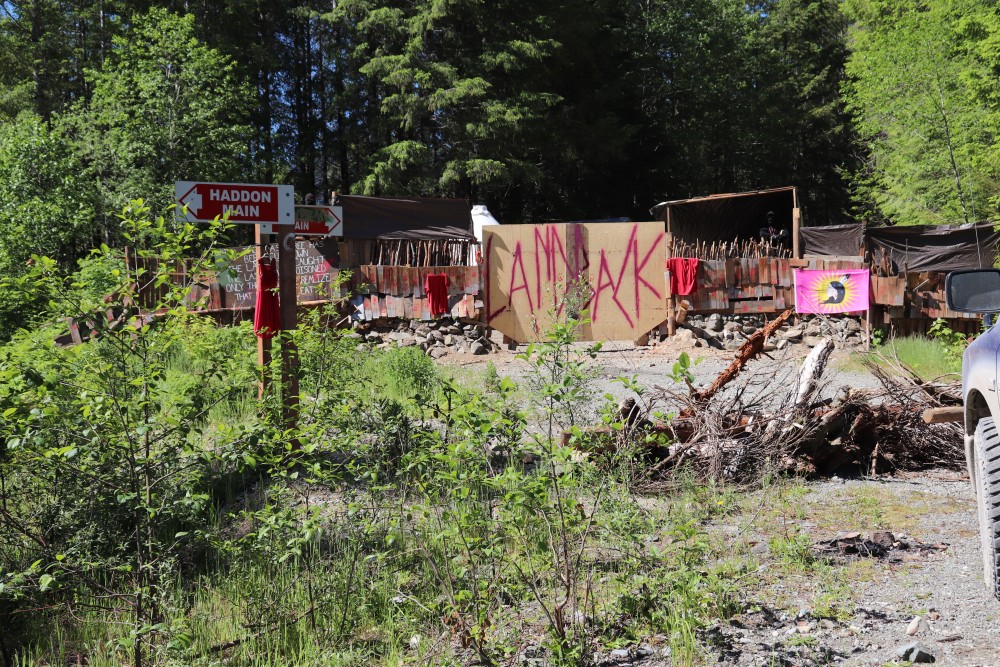 The road they occupy is a spur off Carmanah Main, which now has a set of barricades constructed across the road. The first is made of wood and brambles followed by a more significant structure that appears to be walls made of wood and tarp.