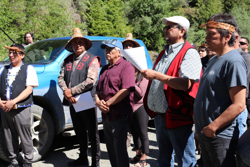 Reading from a prepared statement, Chief Tate said, “By entering into our ḥahuułi you must acknowledge and respect our Indigenous governance and stewardship responsibilities to decide what is best for our lands, our waters, our resources, and the wellbeing of present and future generations of Ditidaht, Huu-ay-aht and Pacheedaht people.”