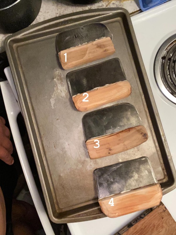 After sanding the handle and sharpening the blade, Titian went out to see some special people in his life, giving them one of four handmade chitukthl from his first attempt.