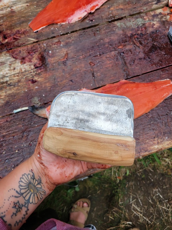 Prior to the introduction of metal, Nuu-chah-nulth people relied on sharpened rocks and shells to cut the fish and game they harvested. Today, they use typical kitchen knives. But just a few decades ago the old-timers made ulu-style knives for fileting fish because they were so much easier to use than a standard kitchen knife.