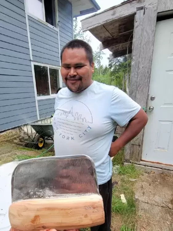 Titian will begin making four new chitukthl as the people in Ahousaht are filling their smokehouses in the coming days. He loves to see the smiles on their faces as he delivers his gift.