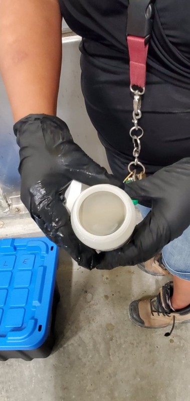 In its final stage of filtration, solid waste is collected and stored until it can be barged out of the village while clear, treated water is drained into the ocean.