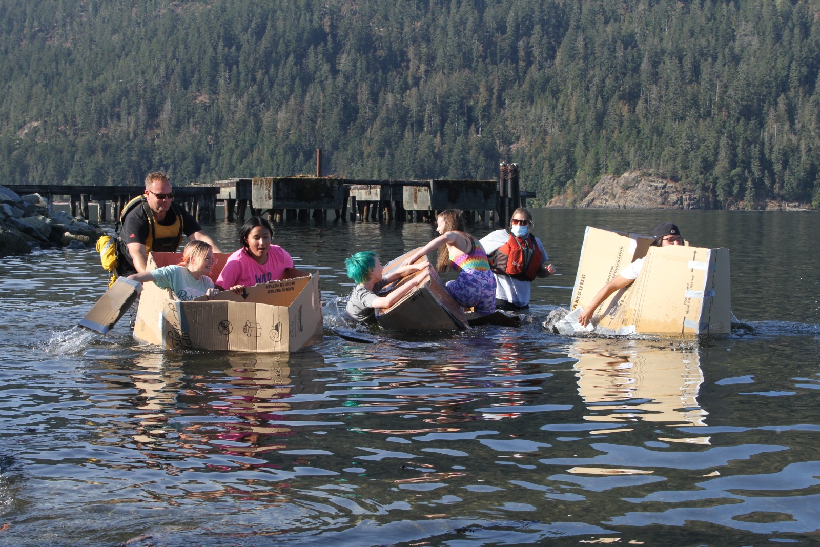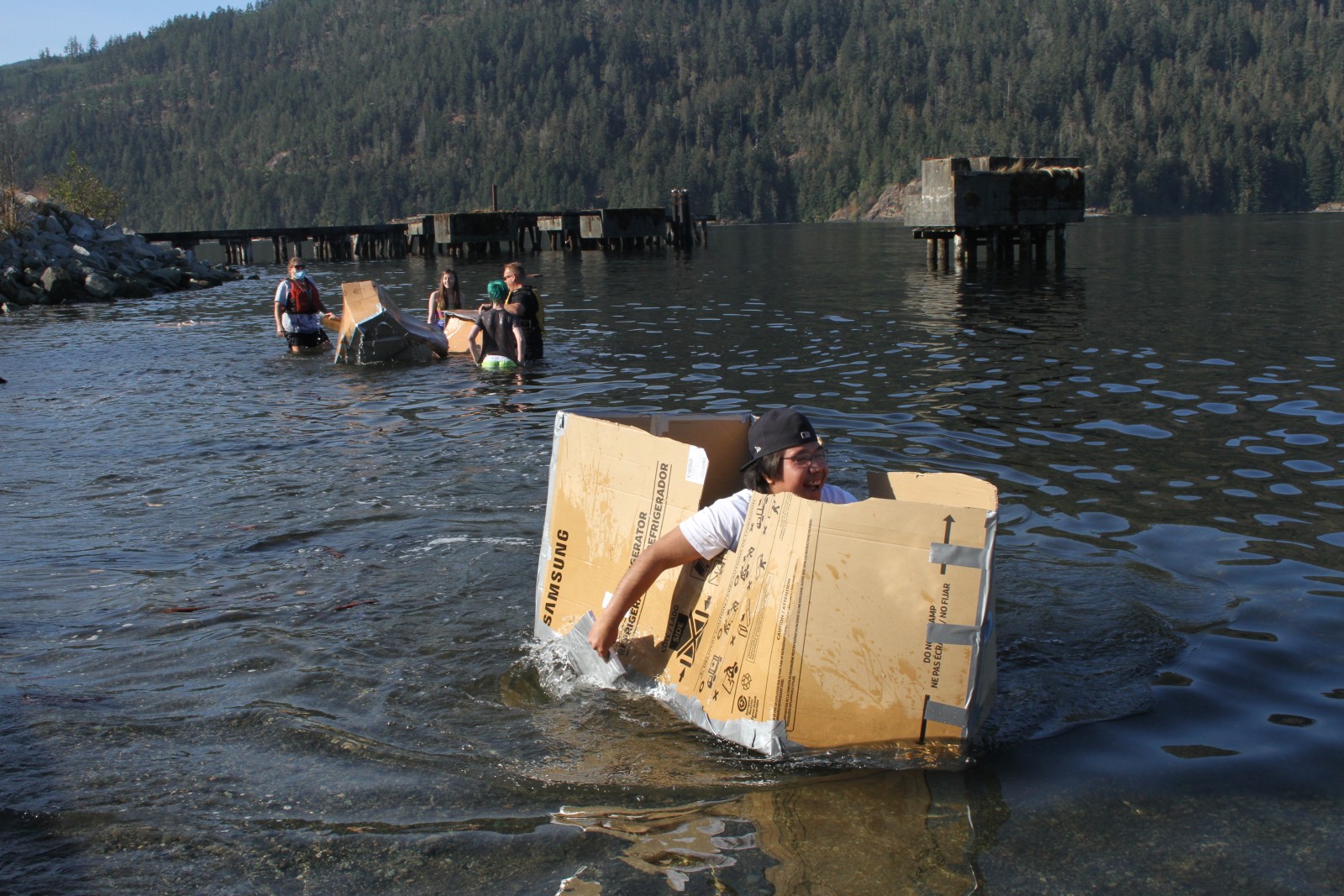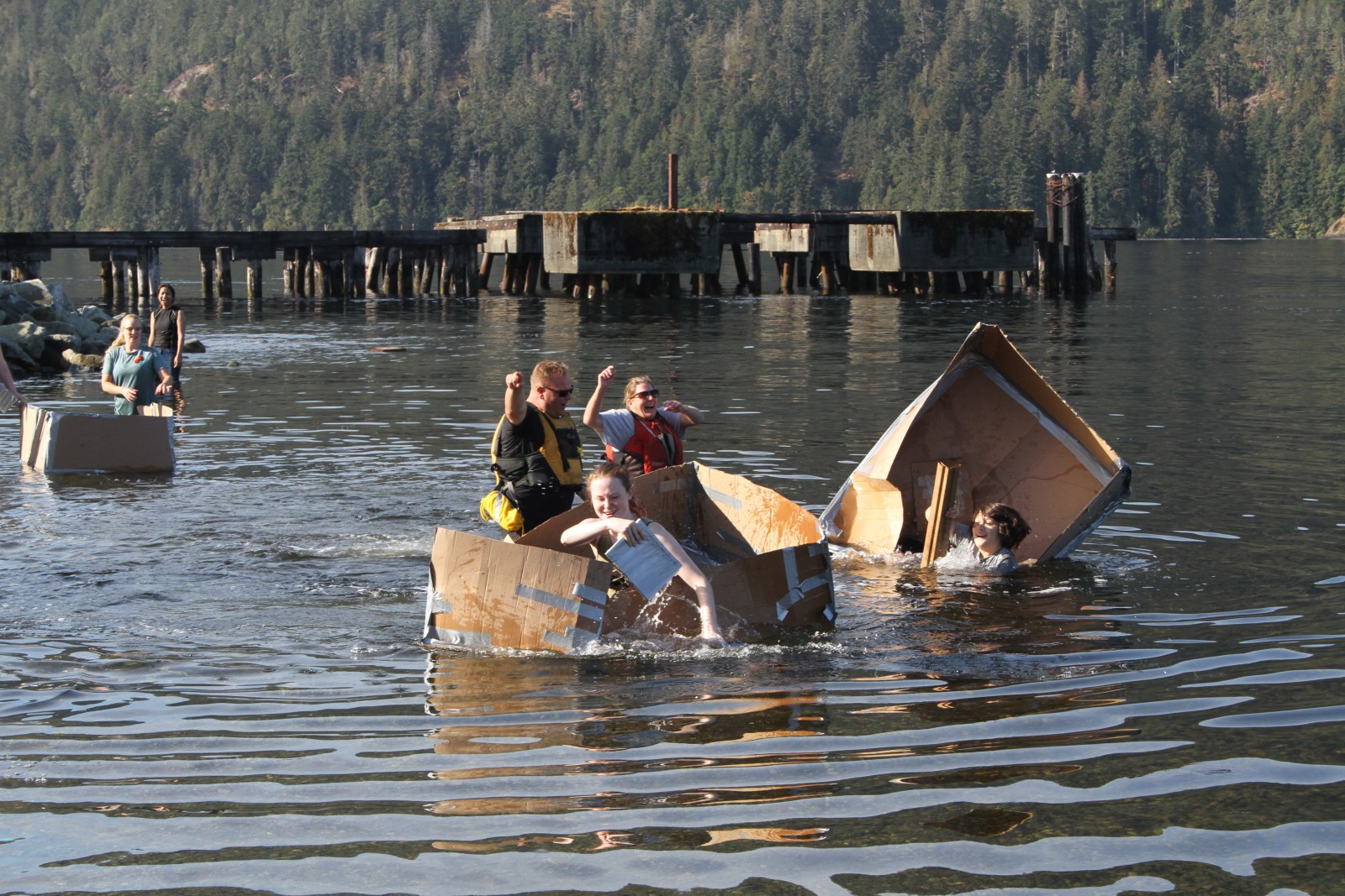 “I got stuck a couple of times, but it was fun,” said August, who paddled in the cardboard vessel.