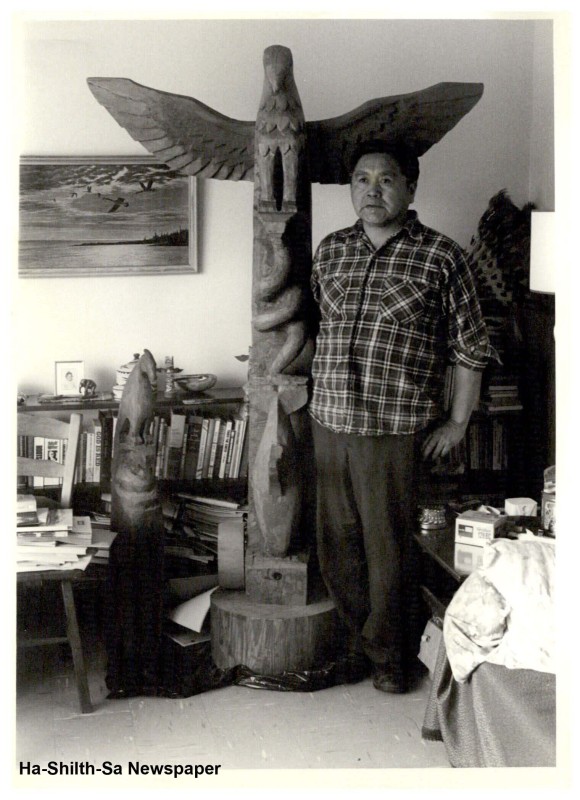 Indeed, there were far more good sides to John Jacobson than bad. He was an artist that carved small totem poles. The carving that hangs above the entrance to Maaqtusiis School in Ahousaht was made by John along with his friend Ron Hamilton in 1986.