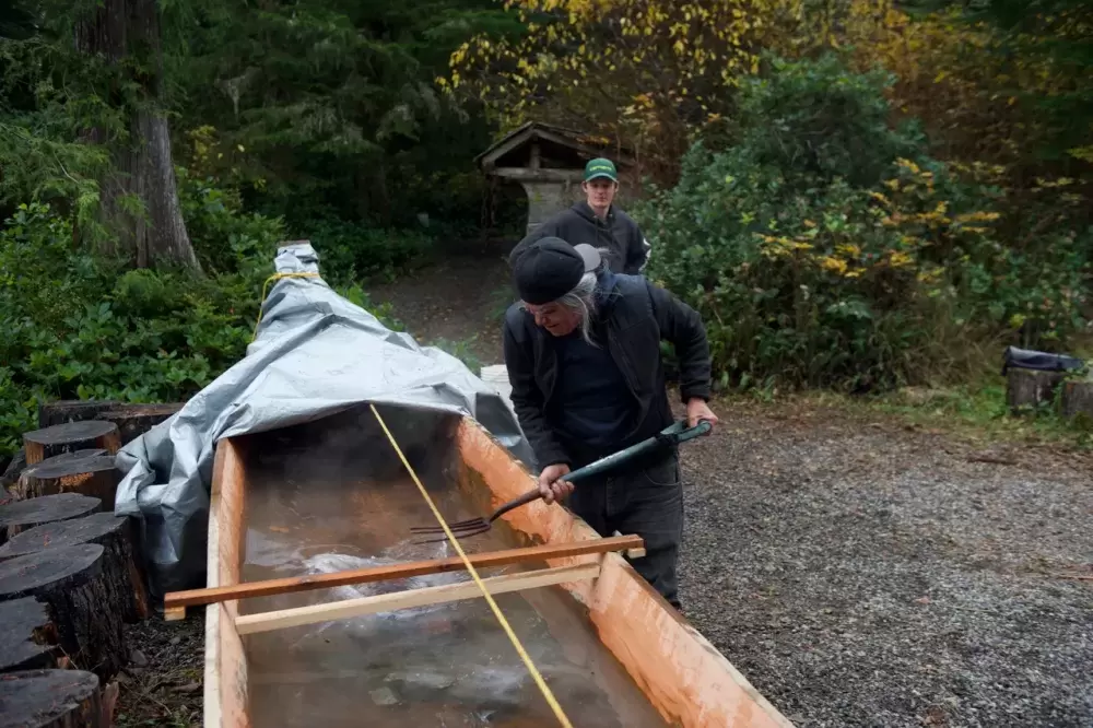 In the early morning of Saturday, Nov. 26, Carl Martin began preparation for a traditional canoe steaming at Naa’Waya’Sum Coastal Indigenous Gardens.