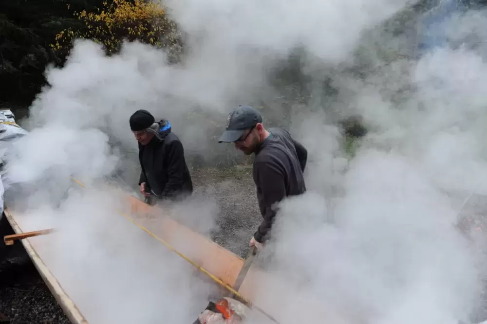 The event was an opportunity to share knowledge of canoe carving and steaming with the community.