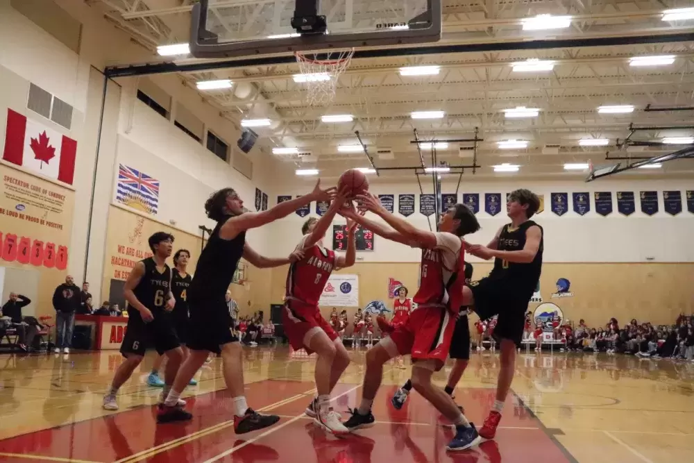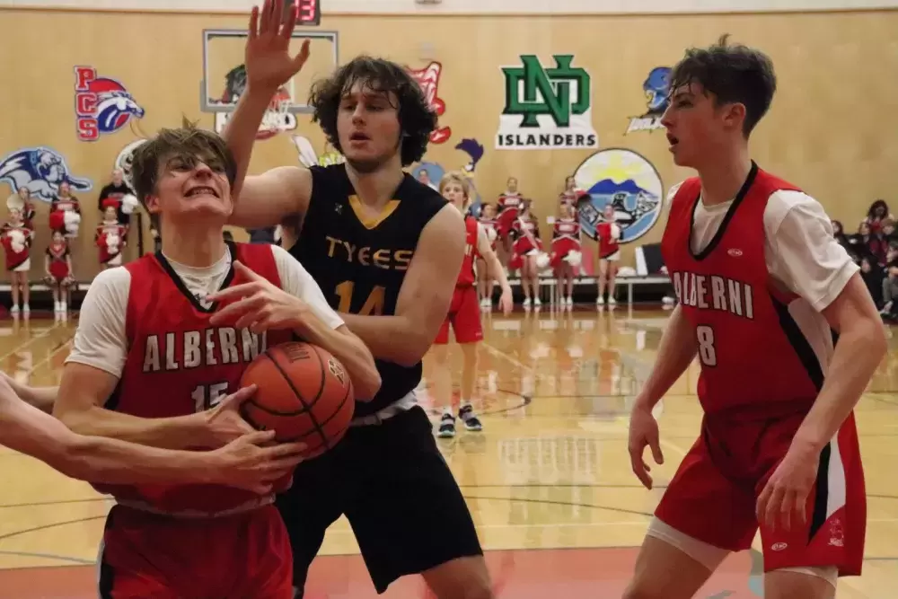 At the start of the final quarter on Jan. 7 the two teams were tied, and the Alberni District Secondary School team took to the court determined. As the minutes went on the crowd grew with intensity, alternating between cheering and chanting, as the two teams battled for the win.