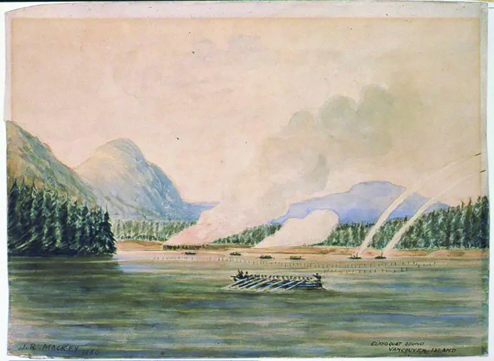 The story begins in August 1864, when the trading vessel Kingfisher anchored in Matilda Inlet at the present-day village of Maaqtusiis, Ahousaht’s main settlement on Flores Island. Captain James Stevenson and his two crew members were there to trade goods for animal pelts.